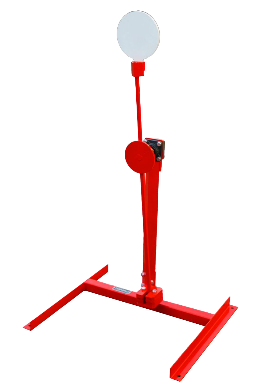 Принцип работы: При активации, мишенная установка совершает маятниковые движения, скорость вращения регулируется перемещением высоты противовеса. При попадании пули в зону поражения магнитная мишень падает.