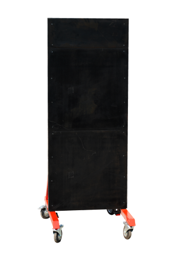 Конструкция изготовлена из броневой стали. Экран-защиты состоит из плотной резины. Колеса дают возможность поставить конструкцию под нужный сценарий.